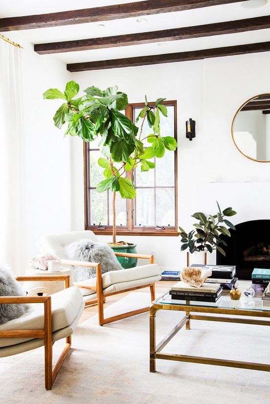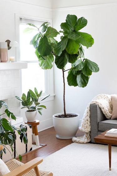Нет ничего более эффектного, чем огромный фикус (лировидный, каучуковый или Бенджамина), монстера, неприхотливая пахира или шеффлера в углу комнаты