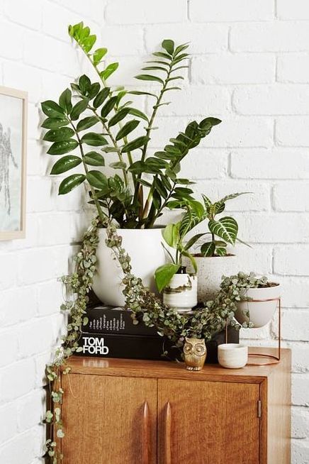 Вместо того чтобы расставлять на комоде или консоли рамки с фотографиями и непонятные декоративные объекты, можно расставить растения в красивых и стильных горшках